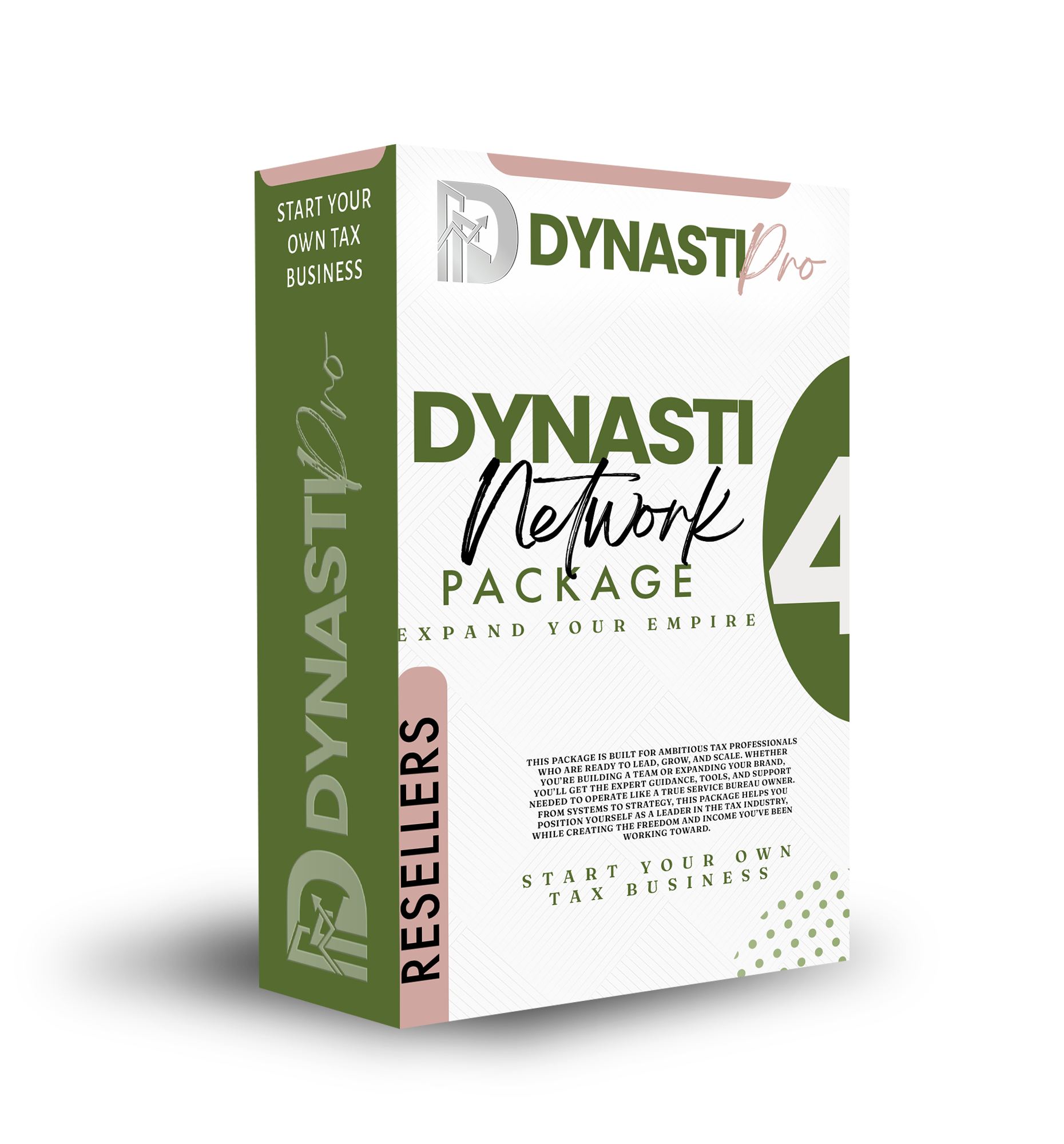 Dynasti Pro Advanced Software Package is designed for tax professionals who aim to establish their own service bureau business. This package provides guidance on building a brand, creating and managing a team, and developing effective marketing and training strategies. It is tailored to assist tax professionals in establishing a successful service bureau business and building a team of over 2,000 tax professionals.